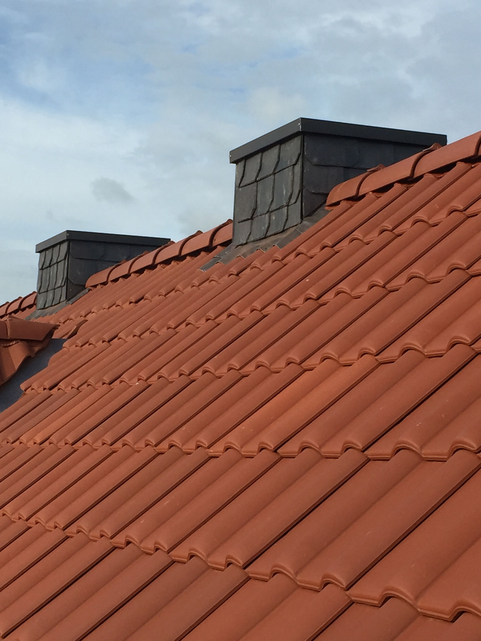 - Dacheindeckung mit Betondachsteinen, Tondachziegel, Schiefer, Faserzement und Metall